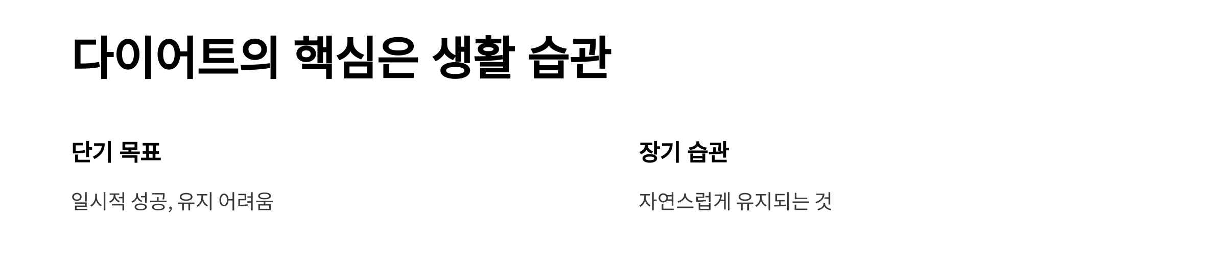 | 목표 체중 도달 후 원래 생활로 복귀 | 건강한 생활 습관을 지속적으로 유지 |