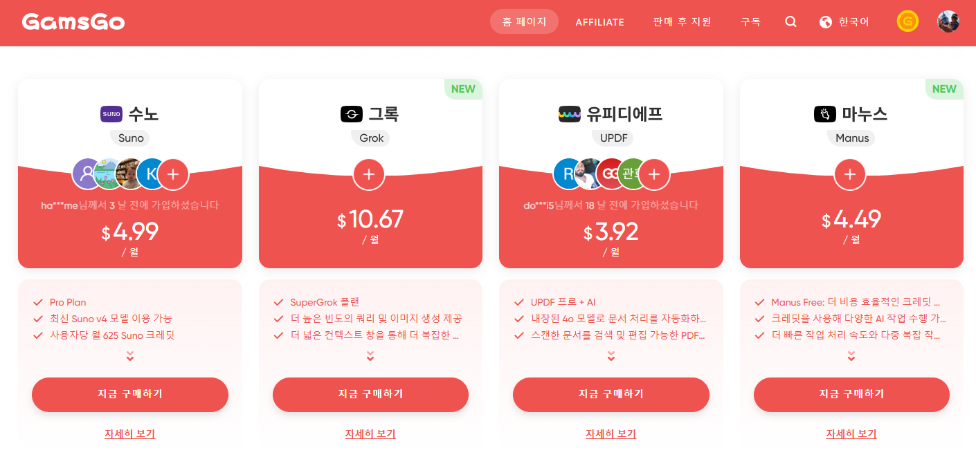 그러던 중 우연히 알게 된 게 바로 'GamsGo 공유구독'이라는 서비스였습니다.